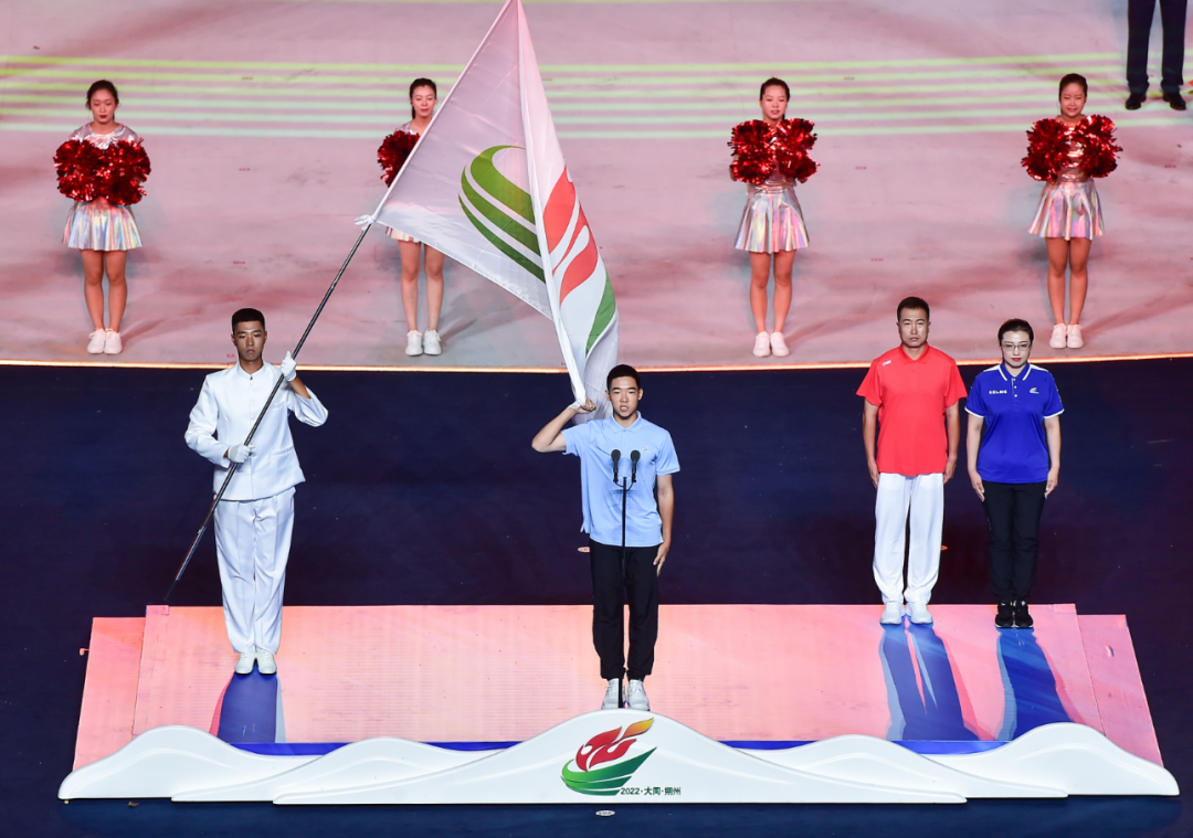 富有地域特色的暖場(chǎng)表演過(guò)后,在一萬(wàn)多名現(xiàn)場(chǎng)觀(guān)眾聲震云霄的倒計(jì)時(shí)中,開(kāi)幕儀式正式開(kāi)始。國(guó)旗和會(huì)旗入場(chǎng)儀式后,各代表隊(duì)運(yùn)動(dòng)員、教練員在引導(dǎo)員和執(zhí)旗手的引導(dǎo)下,闊步入場(chǎng)。大同和朔州作為東道主,壓軸亮相,得到了觀(guān)眾的熱烈歡呼。之后,升國(guó)旗儀式和升會(huì)旗儀式莊嚴(yán)進(jìn)行,山西省第十六屆運(yùn)動(dòng)會(huì)宣布開(kāi)幕。
