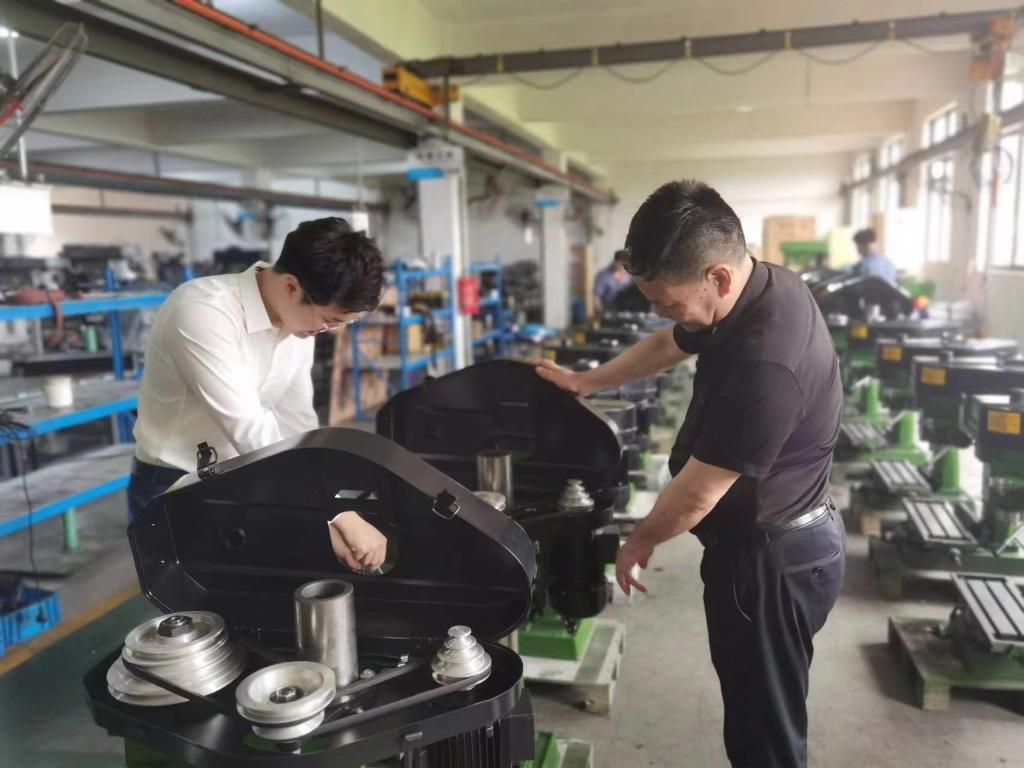 受疫情影響,2021年外貿(mào)企業(yè)訂單量隨著海運(yùn)放緩、海外需求下降而減少。生產(chǎn)閑下來了,但繆繼云和兒子繆帥濤對(duì)產(chǎn)品改良的思考沒有停止。在不斷調(diào)試臺(tái)鉆時(shí),他們發(fā)現(xiàn),調(diào)速必須動(dòng)手換皮帶,“為什么不能像調(diào)收音機(jī)一樣調(diào)動(dòng)速率呢?”兩人一商量,立即開始畫草圖,接著去銀行貸款投入模具開發(fā)。