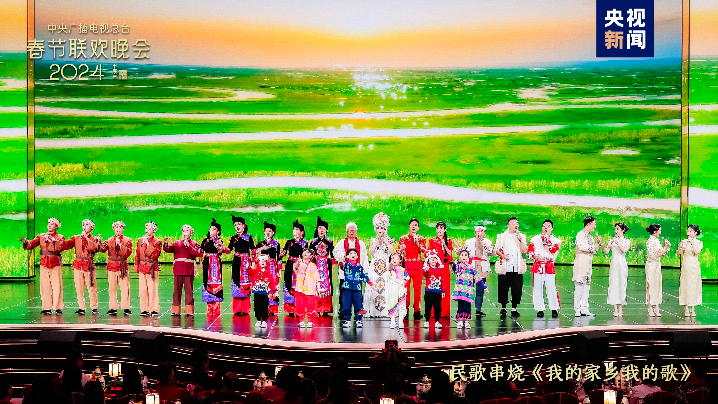 大江南北共歡騰。今年春晚北京主會場與遼寧沈陽、湖南長沙、陜西西安、新疆喀什四地分會場節(jié)目氣韻貫通,國潮表演、歌舞說唱、器樂演奏等節(jié)目形式與地域特點巧妙融合,熱潮一浪高過一浪。民歌串燒《我的家鄉(xiāng)我的歌》集納《太陽出來喜洋洋》《采茶舞曲》《山歌好比春江水》《誰不說俺家鄉(xiāng)好》等眾多經(jīng)典民歌,耳熟能詳?shù)男擅枥L出山河錦繡的幸福年景。