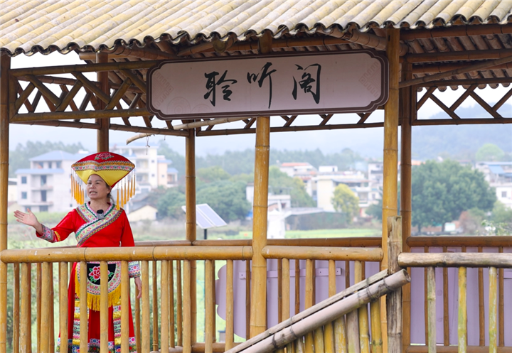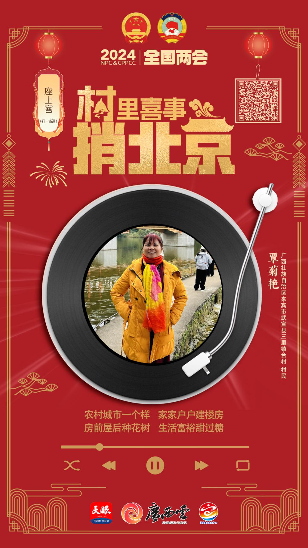 廣西壯族自治區(qū)來賓市武宣縣三里鎮(zhèn)臺村村民覃菊艷用歌聲唱出了如今的美好生活