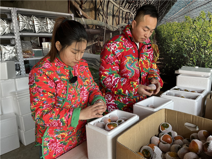 現(xiàn)在正值盤錦堿地柿子集中上市時期,王海濤和張爽每天都忙得團(tuán)團(tuán)轉(zhuǎn)?!敖衲暧唵瘟勘热ツ昝黠@增加不少,上升到每天200單左右。”張爽說。