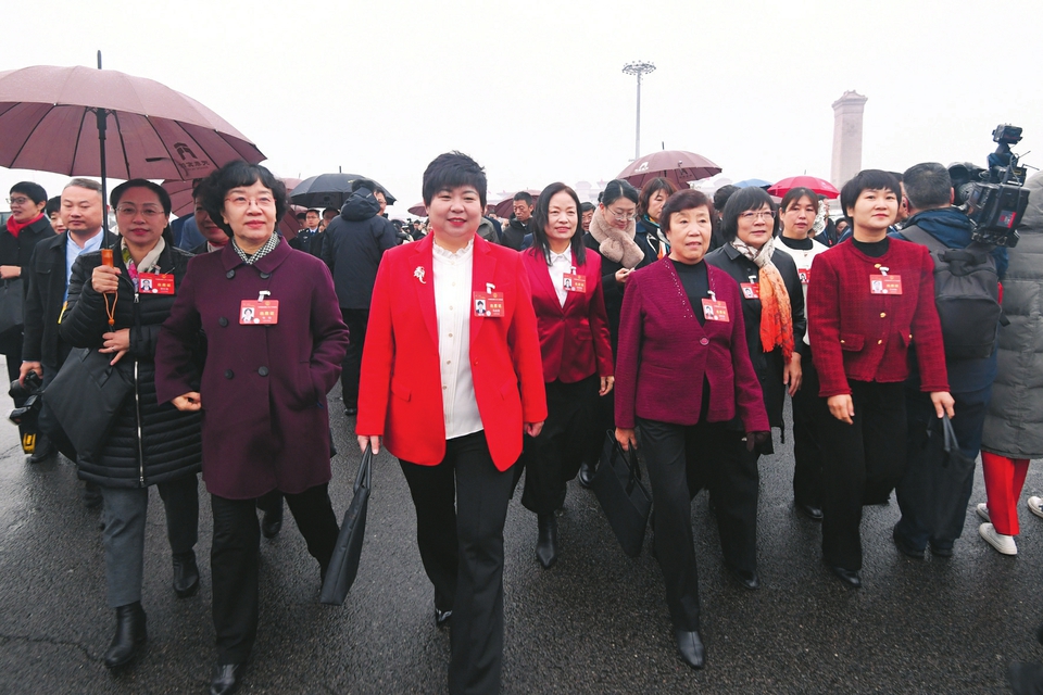 10時20分許,開幕會結(jié)束。走出人民大會堂,代表們步履堅定、信心滿滿。