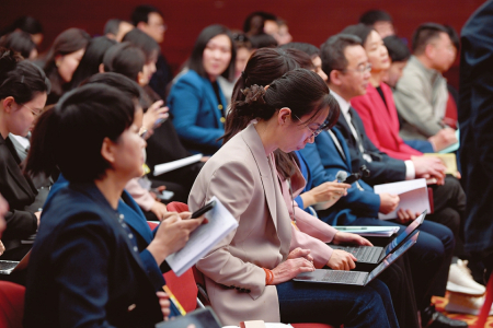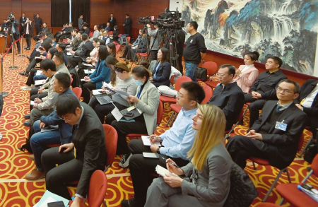 3月6日下午,山西代表團(tuán)媒體開放日活動現(xiàn)場,記者踴躍提問、代表真誠回答,氣氛活躍熱烈。圖為中外記者齊聚。本報(bào)記者李聯(lián)軍 史曉波攝
