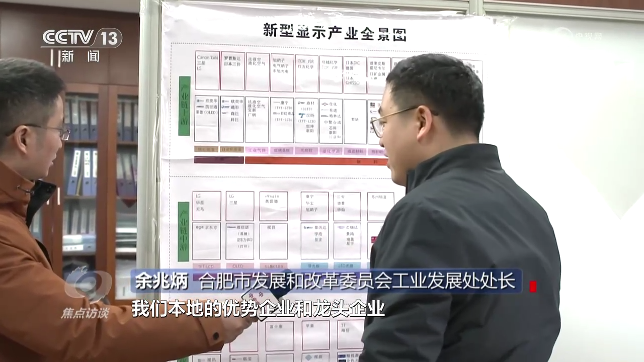 合肥市發(fā)展和改革委員會工業(yè)發(fā)展處處長余兆炳:“新型顯示產(chǎn)業(yè)全景圖上面顯示了合肥市發(fā)展新型顯示的產(chǎn)業(yè)鏈的上游、中游、下游本地的優(yōu)勢企業(yè)和龍頭企業(yè),有這個全景圖,我們對標(biāo)作戰(zhàn)、掛圖作戰(zhàn)非??梢暬鲬?zhàn)?!?/p>