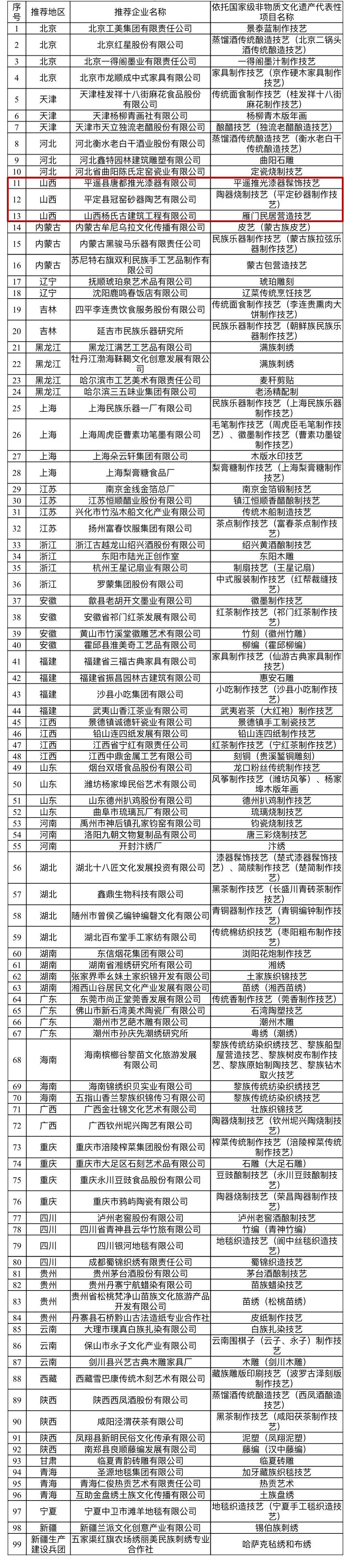 根據(jù)《“十四五”非物質文化遺產(chǎn)保護規(guī)劃》和文化和旅游部等十部門《關于推動傳統(tǒng)工藝高質量傳承發(fā)展的通知》的工作要求,在各地推薦的基礎上,經(jīng)過專家評審、實地考察和社會公示等程序,文化和旅游部認定99家企業(yè)和單位為“2023—2025年國家級非物質文化遺產(chǎn)生產(chǎn)性保護示范基地”,現(xiàn)予公布。