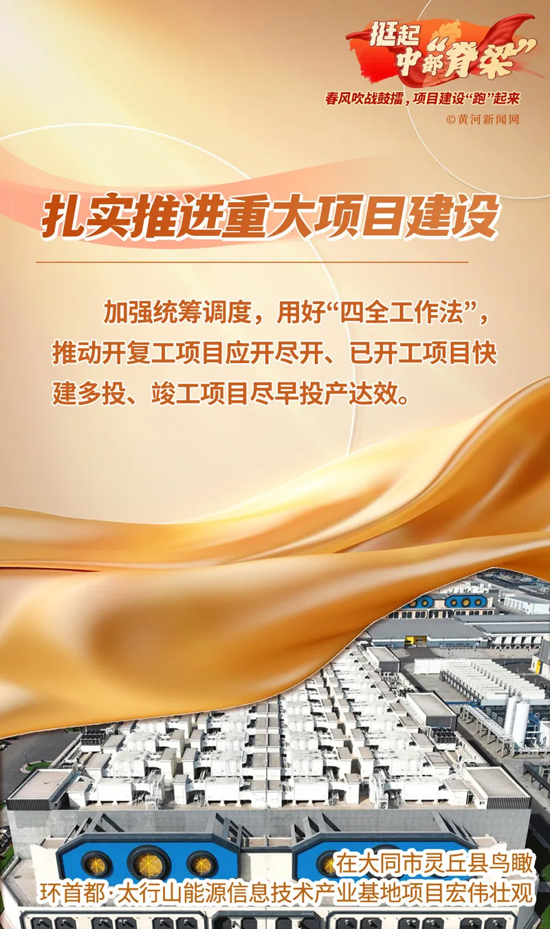 近日,全省重點(diǎn)工程項(xiàng)目調(diào)度會(huì)召開(kāi)。會(huì)議強(qiáng)調(diào),持續(xù)加快項(xiàng)目建設(shè)進(jìn)度,擴(kuò)大有效益的投資,進(jìn)一步鞏固和增強(qiáng)經(jīng)濟(jì)回升向好態(tài)勢(shì)。一組海報(bào),看春天里的山西,項(xiàng)目建設(shè)戰(zhàn)正酣。