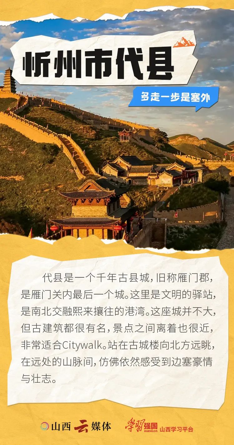 10月18日,山西黃河、長城、太行三個一號旅游公路全線貫通,覆蓋全省113個縣(市、區(qū)),把全省531處國保級建筑、779處省保級建筑、976個旅游景區(qū)景點全部連通。近日,“奔縣”游成為“城會玩”的年輕人的新選擇,這個深秋,跟著我們一起來山西,看看那些令人驚艷的寶藏小城,開啟一段發(fā)“縣”之旅。